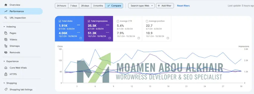 من خلال مقارنة فترات الأداء، نجحنا في خفض متوسط ترتيب الموقع من 22.7 إلى 10.9 (تحسن بمقدار الضعف تقريباً). هذا التحسن في الترتيب انعكس مباشرة على عدد النقرات التي ارتفعت من 1.91 ألف إلى 4.06 ألف شهرياً